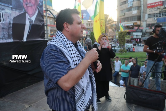 The images show the Fatah rally in Nablus during which an effigy of US President Donald Trump was burned before the crowd. Several senior officials participated in the event, including Fatah Deputy Chairman and Fatah Central Committee member Mahmoud Al-Aloul, Fatah Central Committee member and Fatah Commissioner of NGOs Dalal Salameh, and Israeli Arab Parliament Member and Chairman of the Joint [Arab] List party Ayman Odeh.