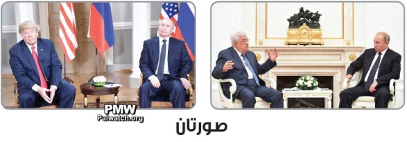 Editorial in official Palestinian Authority daily conducts detailed comparison of images showing Abbas and US President Trump in meetings with Putin
