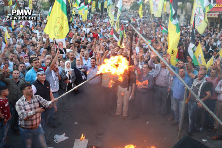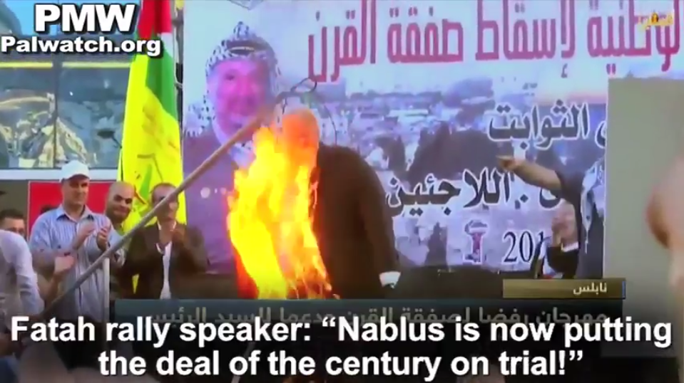 Official PA TV news also broadcast the burning of Trump's effigy stressing that this was to counter the US peace proposal: