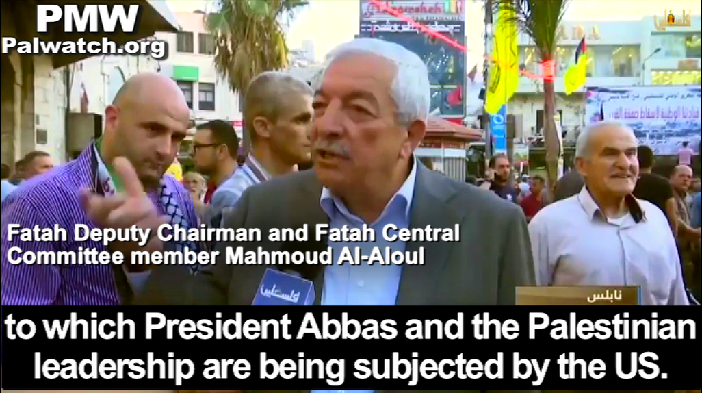 Fatah Deputy Chairman Mahmoud Al-Aloul was also interviewed by PA TV, and stressed the anti-American focus of the Fatah event: ![]() | ![]() |
