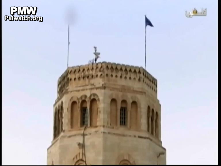 Official PA TV filler Jerusalem Encyclopedia, on the tower of the Rockefeller Museum in East Jerusalem