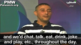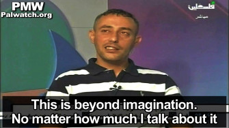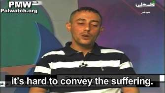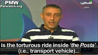 When asked about the difficulties in Israeli prison, the terrorist lamented what he called the "worst thing about Israeli prison" - indeed in his words suffering "beyond imagination." Palestinian Media Watch is pleased to report that the "worst thing about Israeli prison" is forcing terrorist prisoners to ride in a prison vehicle that does not have padding on the seat. | |