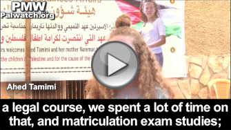 Palestinian 17-year-old Ahed Tamimi, who served eight months in Israeli prison for inciting suicide bombings and for striking Israeli soldiers, was asked by Russian RT TV how she passed the time. Her descriptions of her daily routine for herself and the entire wing include singing, dancing, reading books, watching TV, even legal studies and matriculation exams, and refute the PA's ongoing lies about the conditions in Israeli prisons.