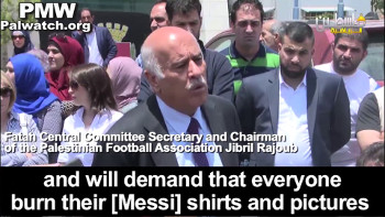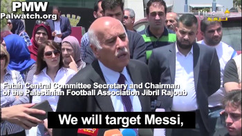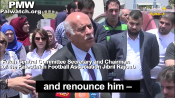 The Palestinian Football Association (PFA) has condemned the international football association FIFA for suspending its chairman Jibril Rajoub, "based on the claims of an Israeli organization... Palestinian Media Watch," reports WAFA, the official PA news agency. [WAFA, Aug. 24, 2018]