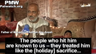Father of Muhammad Adham Abu Anzah: "The people who hit him are known to us - they treated him like the [holiday] sacrifice... There is no need for this barbarity. To torture and hit him inside the mosque, to tie him up, to break sticks on him, and to hit him with chains. His soul was broken... He wanted to commit suicide! He told me: 'Dad, I didn't do anything.'