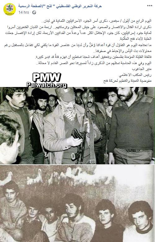 Official Fatah Facebook page celebrates anniversary of 1982 capture of IDF soldiers: “What we need today is the optimism that our enemies’ power is feeble”