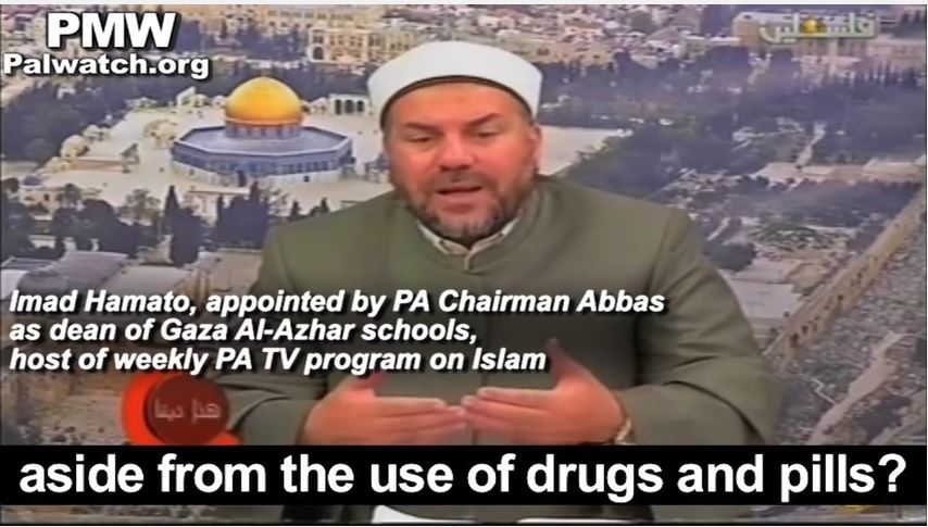 Last year, the Abbas-appointed dean of Islamic schools and PA TV host Imad Hamato explained on TV that among the "bad" things Israel has "given to the world" is "the use of drugs and pills," and stated that Israel in cooperation with the CIA spreads "mood enhancers" and "hallucinatory substances" to "destroy what remains of our children's values":