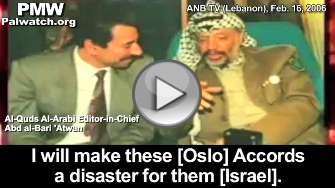 Not so for the PLO and its administrative arm the Palestinian Authority. Since the signing of the Oslo Accords in 1993, the Palestinian Authority leadership has made it clear to their own people that the goal of Oslo was never a long-term peace with Israel. The model for Oslo, explained Yasser Arafat and many other PA leaders, was to mimic the "Treaty of Hudaybiyyah" - a 10-year peace treaty signed by Islam's Prophet Muhammad with the Quraysh Tribe of Mecca. The treaty did not last because two years after signing the treaty, Muhammad attacked, and conquered Mecca.
