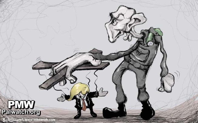 Another cartoon, published in the official PA daily, criticized Trump for being Israel's "puppet":