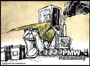 Cartoon in official Palestinian Authority daily depicts US President Trump as a bulldozer operated by an IDF soldier