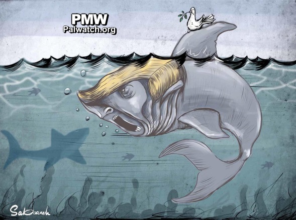The Palestinian Authority leadership continues to demonize US President Trump because of his support for Israel, and PA and Fatah repeatedly express their contempt in words and cartoons. In the cartoon above, one of several recent Trump-mocking cartoons printed in the official PA daily, Trump is portrayed as a shark. On its fin sits a dove with an olive branch in its beak. [Official PA daily Al-Hayat Al-Jadida, Oct. 7, 2018]