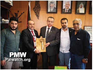“The [Palestine] Olympic Committee delegation conveyed to Palestinian [PA] Ambassador in Saudi Arabia Bassem Al-Agha the greetings of Chairman of the [Palestine] Olympic Committee [and Fatah Central Committee Secretary] Jibril Rajoub, and honored him with a plaque of appreciation.”