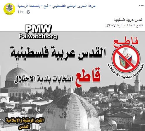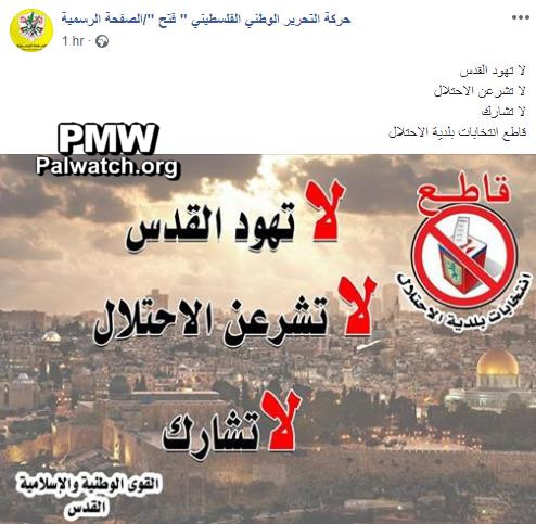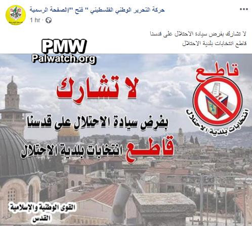 Fatah calls on Palestinians to boycott Jerusalem municipal elections: "Don’t Judaize Jerusalem, Don’t give the occupation legitimacy"