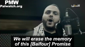 - Song on PA TV anticipates Israel's "erasure":"O Balfour, years have goneGenerations have gone until nowYou have gone and others have gone,yet this is the land of Palestine...Regardless of the time that passes,we will erase the memory of this [Balfour] Promise"