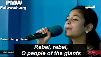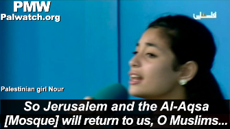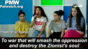 For years, PA TV has been inviting children to sing this song that urges Palestinians to seek "war" that will "smash and destroy" Israel.