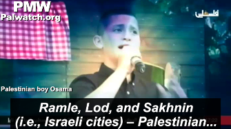 Palestinian boy Osama: "Haifa, Acre, Jaffa, and Nazareth (i.e., Israeli cities) are ours,