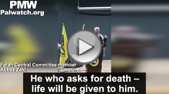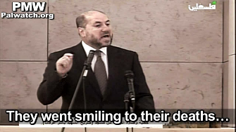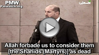 The PA and Fatah glorify and promote "Martyrdom-death" (Shahada) for Allah as a supreme ideal. Those who are killed while carrying out terror attacks or "struggle against the occupation" are honored as "Martyrs" and rewarded by Allah in the afterlife. They go to Paradise where they marry 72 virgins. Official PA TV has broadcast a music video that urges Palestinians to heed the "call of Al-Aqsa" and become "grooms and brides" who enter "the Paradise of immortals."PA Chairman Abbas' advisor on Religious Affairs, Mahmoud Al-Habbash, has explained the value of Shahada and the rewards the Shahid - the "Martyr" - receives from Allah. In a televised sermon, Al-Habbash described the "Martyrs" as going "smiling to their death" - exactly what Zaki taught the students: