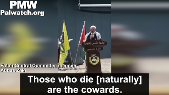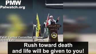 In a speech at Al-Quds Open University, Fatah Central Committee member and Fatah Commissioner Abbas Zaki urged new students to seek death for Jerusalem. Zaki shouted to the young people:"Allahu Akbar! Allahu Akbar! Cursed is anyone who doesn't sacrifice for Jerusalem!"
