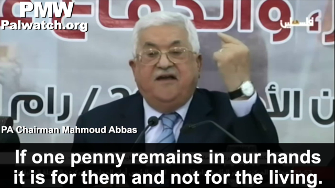 Abbas: "I say this to everyone - the salaries of our Martyrs, prisoners, and wounded are a red line. They [Israel] try by all means, and exert pressure by all means, and they continue to exert pressure: "It cannot be that you will pay." And they'll even deduct our money that's in their hands. They'll deduct from it the amount that we pay to the Martyrs. We have said that this is a red line and we will not allow [it]. From 1965 until now, this matter is sacred to us. The Martyrs and their families are sacred, [and so are] the wounded and the prisoners. We must pay all of them. If one penny remains in our hands it is for them and not for the living."