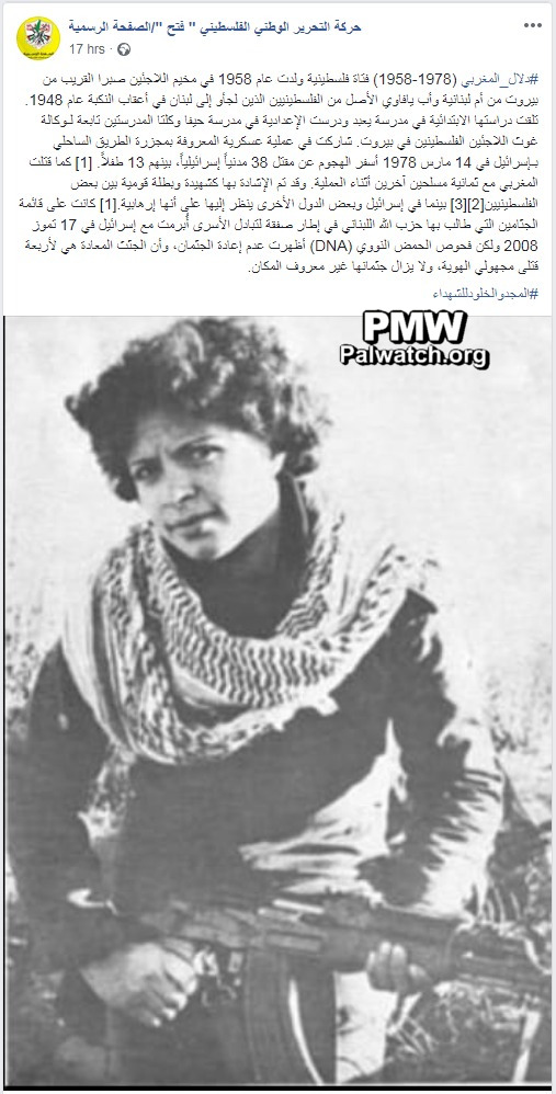 Fatah Facebook post glorifies terrorist Dalal Mughrabi, who led murder of 37
