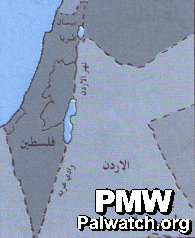 The map, which includes the area of all of Israel and the Palestinian areas, is called "Palestine" and does not acknowledge the existence of Israel at all.