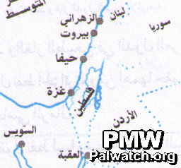 Map in Palestinian Authority schoolbook published in 2003-2004, currently in use.