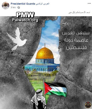 Image on official Facebook page of the Palestinian Authority Presidential Guard presents map of “Palestine” replacing Israel