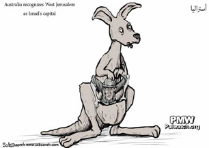 Palestinian Authority daily cartoon against Australian recognition of West Jerusalem as Israel’s capital depicts an Israeli soldier in a kangaroo’s pouch