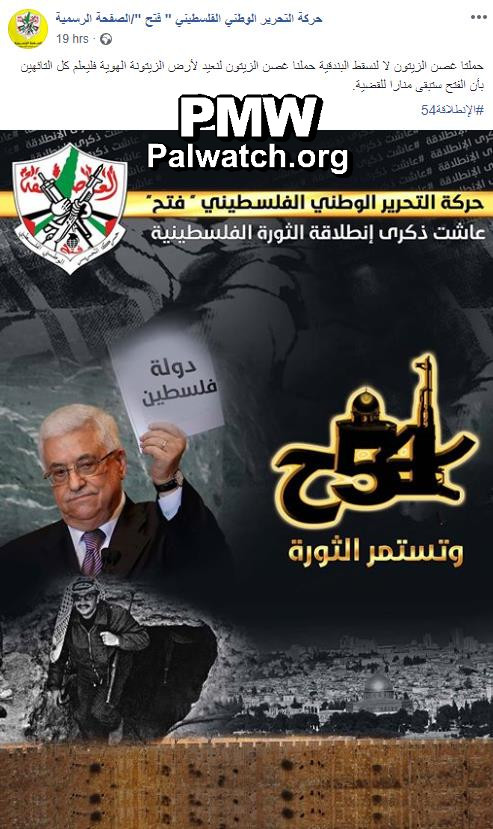 Fatah post commemorating first terror attack: “We have not borne the olive branch in order to drop the rifle”