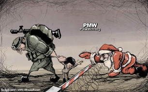 Cartoon in official Palestinian Authority daily shows an Israeli soldier dragging a child away from Santa Claus