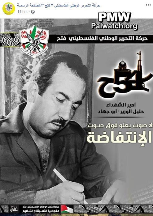 Image on Fatah’s official Facebook page praises terrorist Abu Jihad, responsible for the murder of 125 Israelis, as “Prince of Martyrs”