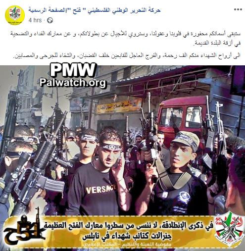 Fatah posts text commemorating terrorists with image of armed men: “We do not forget those who recorded Fatah’s glorious battles... We will tell the generations about your heroism”