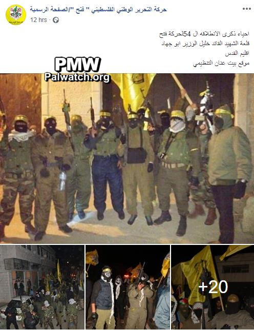 Fatah posts images of procession of armed fighters on anniversary of Fatah’s first terror attack