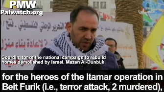 The coordinator of "the national campaign to rebuild homes demolished by Israel" in the PA, Mazen Al-Dunbuk, confirmed that the Abu Hmeid home will be rebuilt. He also announced that the homes of "the heroes of the Itamar operation" have been rebuilt already. The terrorist murderers who the PA sees as "heroes" murdered the young couple Naama and Eitam Henkin in front of their four children in 2015.