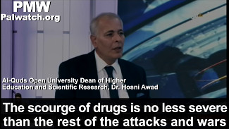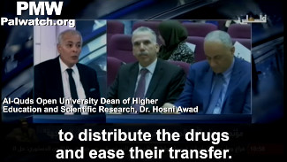 Both the president and the dean of Al-Quds University repeated this PA libel, stressing that Israel “inflicts the scourge of drugs” on Palestinian society and that Israel is using drugs to wage “a war” against young Palestinians. The Dean of Higher Education and Scientific Research even claimed that Israel has “special agencies” that “distribute the drugs and ease their transfer”: