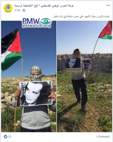 Posted text: "Marking the anniversary of the death of Martyr (Shahid) Ali Hassan Salameh (i.e., commander of the Black September terror organization) in the village of Ni'lin."