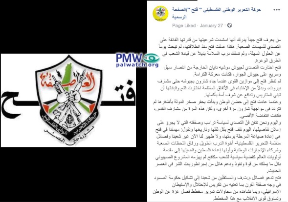 Fatah calls on the PLO factions and independents in our people to establish the [PA] government of resolve against ‘the deal of the century’ (refers to Trump’s as yet unpublished Middle East peace plan –Ed.)…