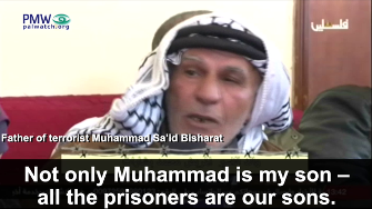 As Palestinian Media Watch has documented, events are named in honor of the terrorist prisoners, PA and Fatah officials thank and praise them in speeches, and official PA TV broadcasts several programs about and specifically for the prisoners and visits their families. The following two recent broadcasts on official PA TV show that the Palestinian population embraces this role modeling of murderers:
