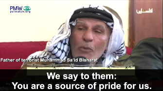 Father of terrorist Muhammad Sa’id Bisharat: “I want to send a message to Muhammad [Sa’id Bisharat] (i.e., terrorist, attempted suicide bombing) and to all the brothers and the loved ones, our sons, the prisoners, the sons of the Palestinian people. Not only Muhammad is my son - all the prisoners are our sons. We say to them: You are a source of pride for us. By Allah, with your endurance you have outlined the most beautiful picture in history. You are the history. You are the symbol of the Palestinian cause. You are the ones [we mean] when we say ‘Giants of Endurance.’”