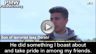 Son of terrorist murderer Issa Darabi: "It means everything to me. My father isn’t like other fathers. He is in a special situation, a prisoner. He did something I boast about and take pride in among my friends. I love to talk about him and his acts of heroism, because he is a symbol and a hero."