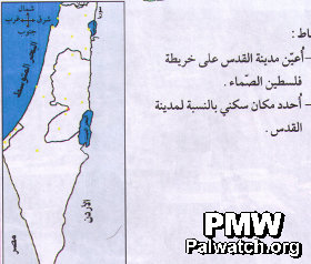 Translation of relevant text: "Identify the city of Jerusalem on the map of Palestine."