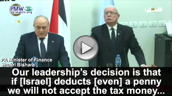 PA leaders have emphasized the refusal to accept any tax money if Israel deducts from the total sum, and they have stressed that the PA will continue to pay rewards to terrorists at all costs:PA Minister of Finance Shukri Bishara: