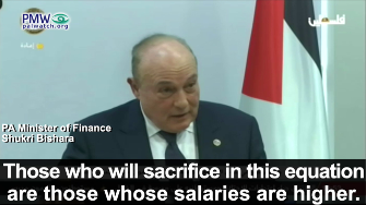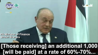 Actually, pay cuts for the private sector to fund the PA’s “Pay for Slay” program rewarding terrorists have been institutionalized by PA law in the past. Law No. 14 for Support for Prisoners in the Israeli Prisons from 2004 stipulated that the value of one work day was deducted from public employees annually. This money went into an account to benefit prisoners from the “Al-Aqsa Intifada” (PA’s terror campaign, 2000-2005.) The law further stated that “the [PA] government is entitled to request from the non-governmental private sector that the salary of one work day be deducted from all employees of those institutions for the benefit of the [prisoner] account.” In the current self-inflicted crisis, the PA might possibly return to using such measures.