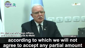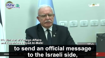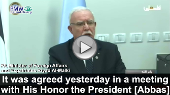 He also emphasized that the Palestinians will not be silent about the acts of theft that Israel is committing by cutting the Palestinian money (refers to Israeli law to deduct terrorist salaries from PA tax money; see note below -Ed.), and we will turn to the international courts to restore the rights of the members of our people.”