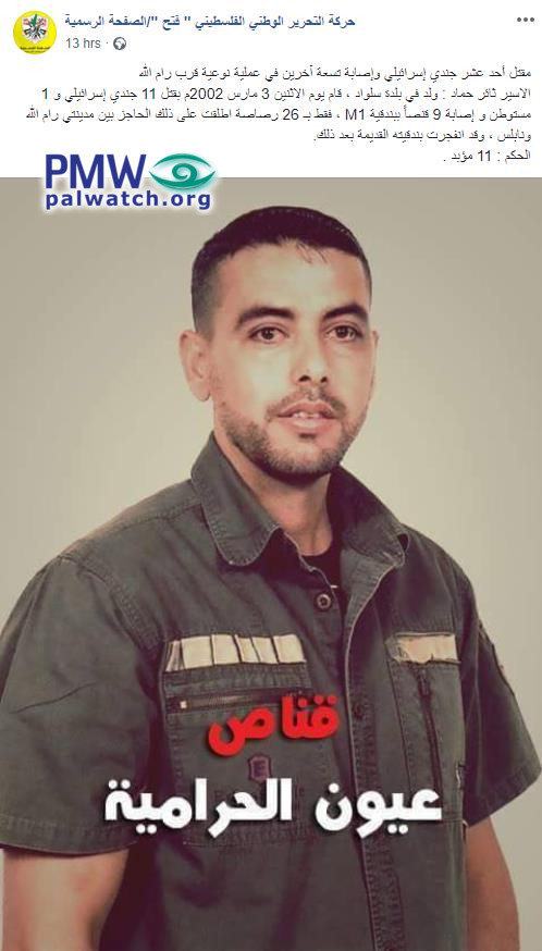 The image shows terrorist Thaer Hammad, who murdered 10 Israelis.