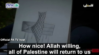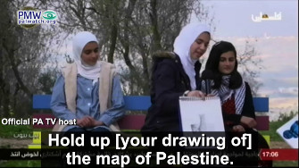 Official PA TV host to girl:"Hold up [your drawing of] the map of Palestine. How nice! Allah willing, all of Palestine will return to us and we will enjoy its breathtaking views."