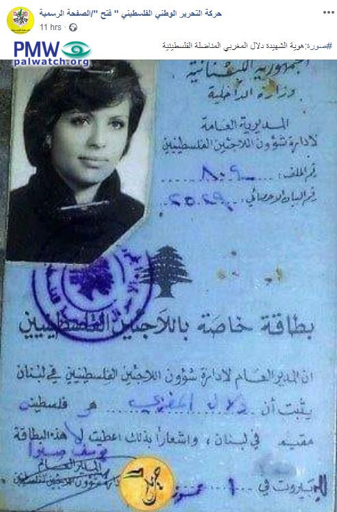 Fatah Facebook posts identity card of terrorist “Palestinian fighter Martyr Dalal Mughrabi”