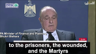 Proving conclusively that the Palestinian Authority is willing to punish hard-working employees to continue rewarding terrorists, the PA Minister of Finance has reiterated that while the PA will cut the salaries of most of its employees, it will pay - in full - the salaries to the imprisoned terrorists and released terrorists, as well as the allowances to wounded terrorists and the families of dead terrorists. At a televised press conference the minister emphasized that rewarding terrorists and murderers is "a principle which no force on earth can make the PA deviate from":