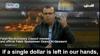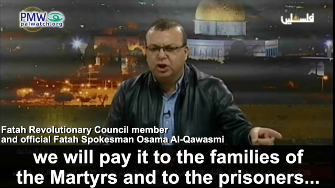 "The salaries of the families of the Martyrs and the prisoners will be paid regardless of the cost, and that it is not possible to abandon or treat lightly the livelihood of the Palestinian people's heroes... non-payment of the public employees' salaries is less significant than subtracting one penny from the family of a Martyr or prisoner who sacrificed his life and freedom for Palestine and its heroic people, such as heroic Karim Younes (i.e., terrorist, murdered 1 together with an accomplice), who until now has served 37 years in the occupation's prisons."