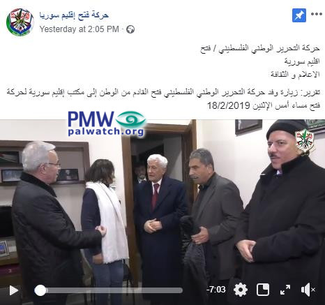 Video posted on the Facebook page of the Fatah branch in Syria, from a Fatah delegation’s visit to the Fatah branch in Syria